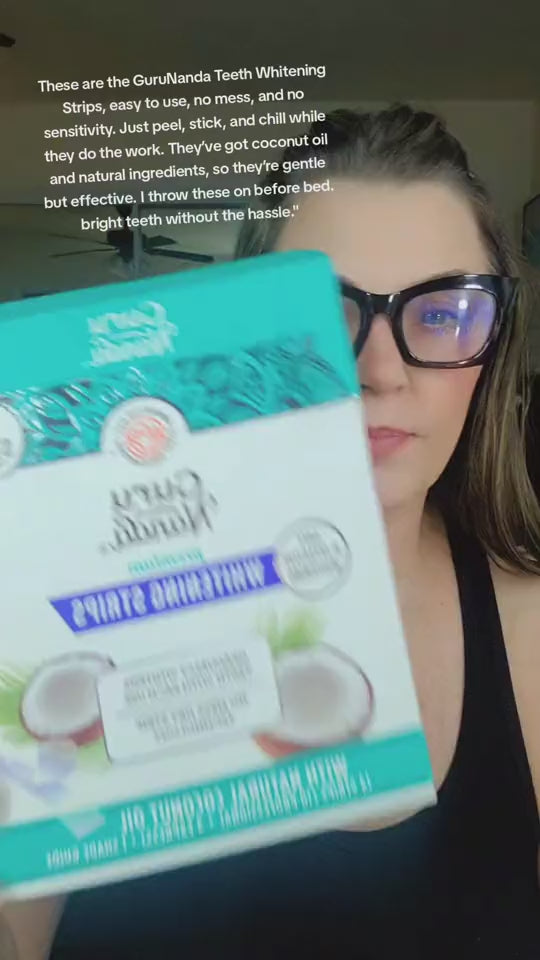 - Reveal a brighter smile with GuruNanda Teeth Whitening Strips. Our dry-strip formula combines hydrogen peroxide with soothing coconut extracts, helping to break down stains & whiten teeth.